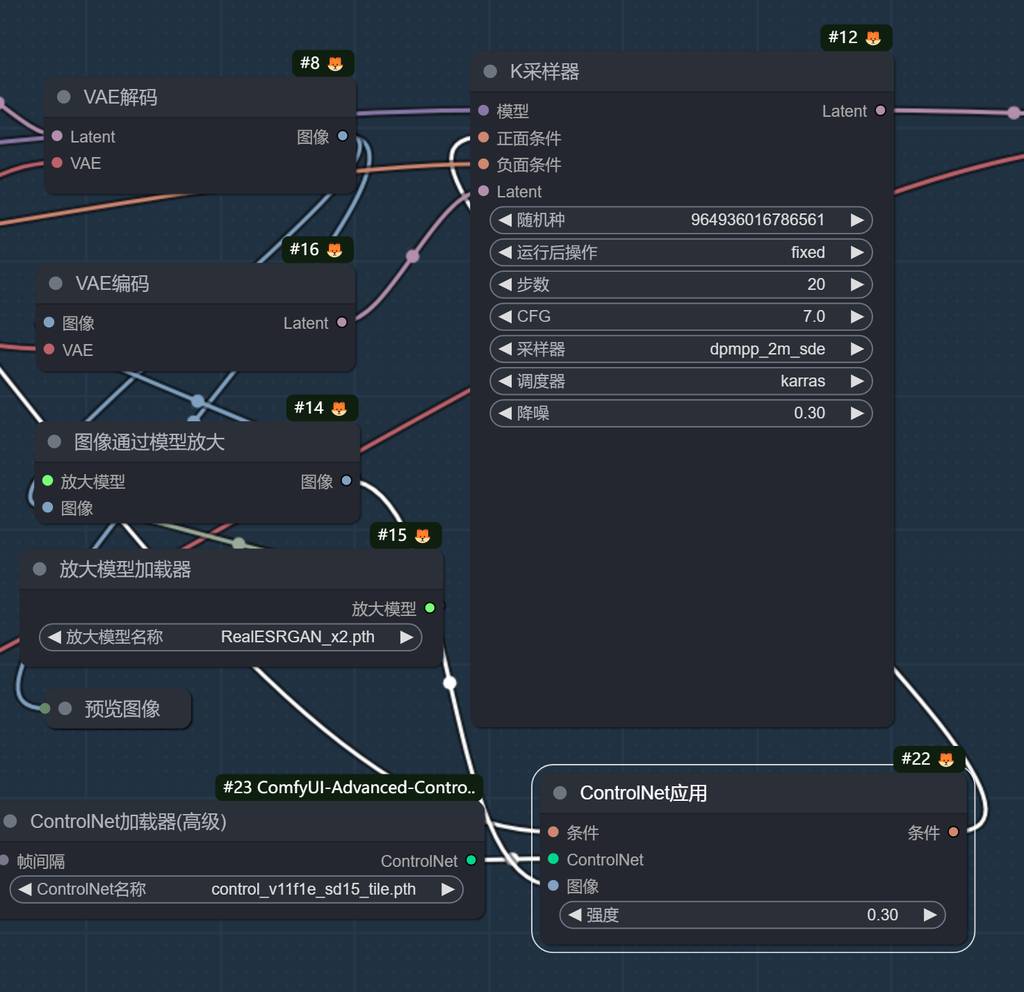 放大,为了获得更丰富的细节,加入了tile的controlnet模型,然后进行第二采样处理。