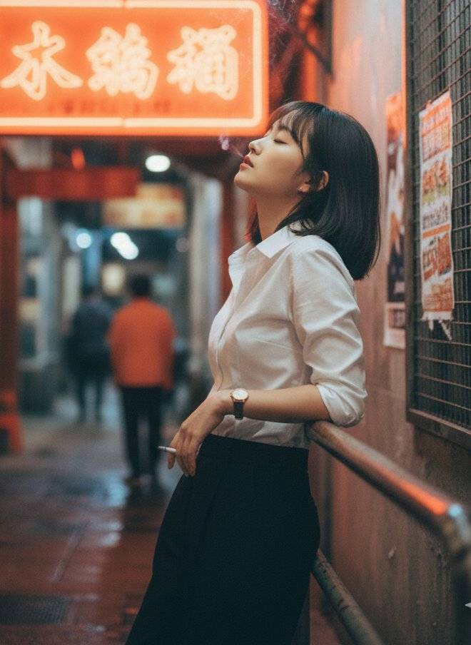 作品赏析:以九龙城寨为灵感,用橙红霓虹与冷白灯光打造强烈光比,捕捉东亚女性在潮湿窄巷中的沉思瞬间,8K电影质感还原90年代香港夜街的复古氛围感。