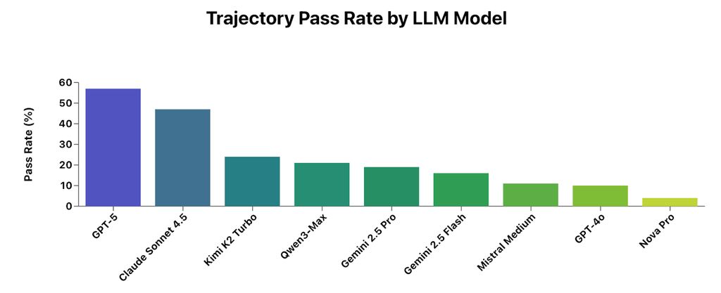 即便是GPT-5与Claude Sonnet 4.5,在该RL环境中仍有超过40%的智能体任务失败。