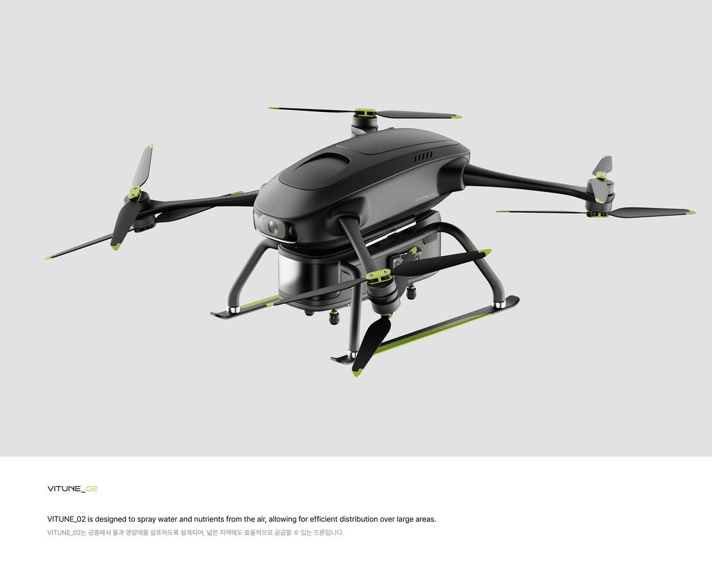 VITUNE_02 补给无人机 VITUNE_02 专为从空中喷洒水和养分而设计,能够实现大范围的高效补给。